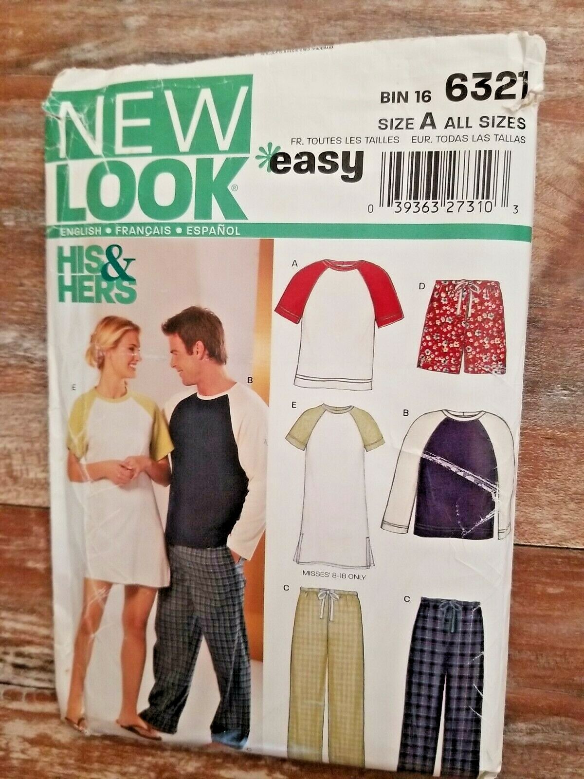 New Look Sewing Pattern 6321 His Hers Sleepwear Nightshirt Pjs Sizes Xs Xl Uncut Ebay